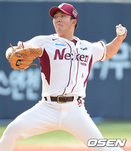 2회초 두산 공격 때 넥센 선발 금민철이 힘차게 공을 뿌리고 있다.