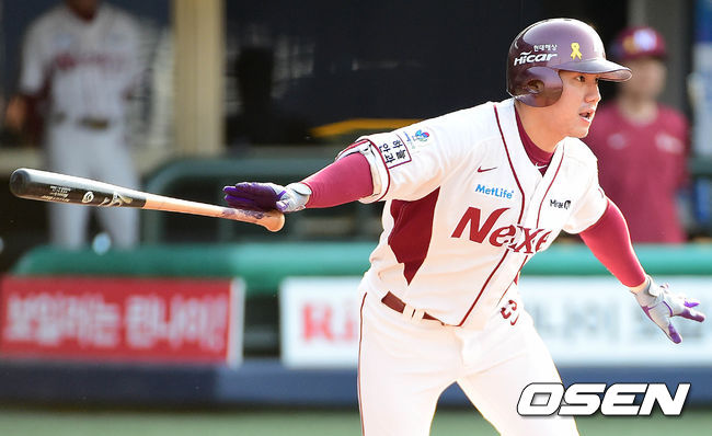 2회말 넥센 공격 무사 2루 상황 문우람이 1타점 적시 우전안타를 날리고 있다.