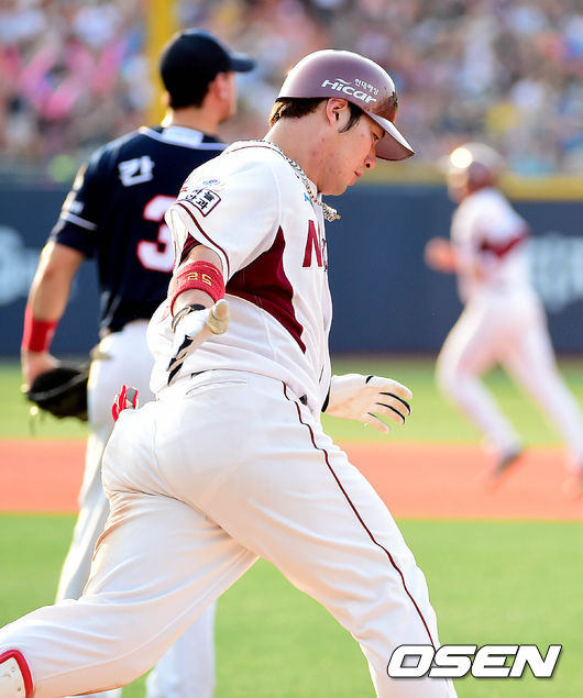 3회말 넥센 공격 무사 1루 상황 박병호가 중월 투런포를 날리고 그라운드를 돌고 있다.