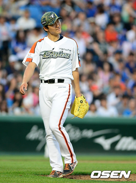 7회초 2사에서 한화 안영명이 삼성 박석민에 볼넷을 허용하며 아쉬워하고 있다.