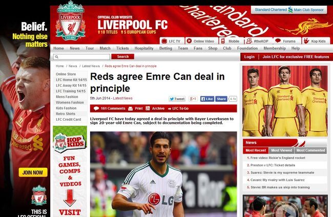 리버풀은 5일(이하 한국시간) 공식 홈페이지를 통해 "엠레 칸 영입에 합의했다"고 발표했다. 이적료는 공식적으로 밝혀지지 않았으나 복수의 영국 언론들은 975만 파운드(약 167억 원) 가량으로 추정하고 있다.