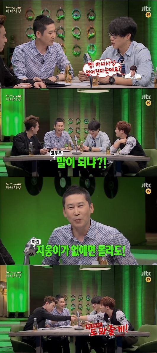 이에 신동엽은 성시경이 했던 말을 인용하며 “허지웅이 ‘마녀사냥’을 없애면 몰라도”라며, “허지웅이 사고를 치면 몰라도 걱정 없다”고 말해 웃음을 자아냈다. 성시경 역시 “열쇠는 얘가 쥐고 있다”며 허지웅을 가리켰다.