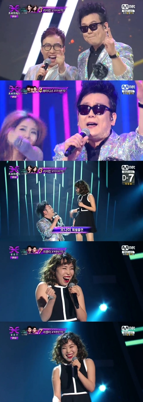 ‘트로트엑스’ 오나미가 미스터팡 무대에 깜짝 등장했다.