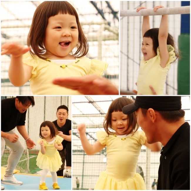 체조 수업 당일 아빠에게 안긴 채 트램펄린을 뛰며 몸과 마음의 준비를 마친 사랑이는 철봉에 거뜬히 매달리는가 하면, 운동에 신이 나 댄스 실력까지 뽐내 주위를 웃음 바다로 만들었다.