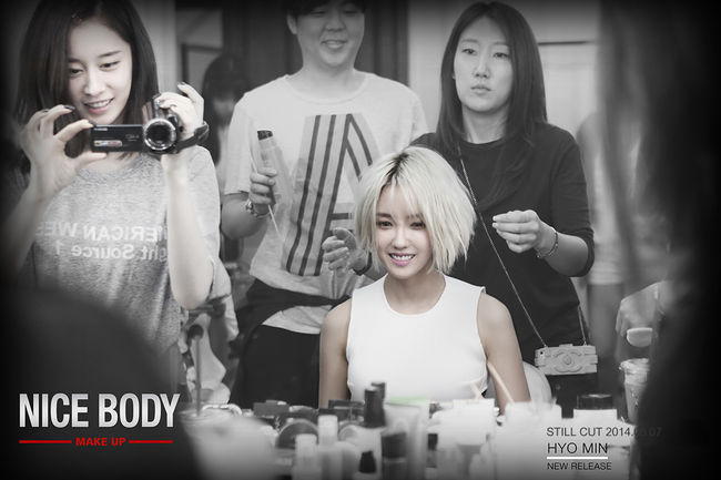 사진 속에는 재킷 촬영 중 백발 헤어를 손질 받고 있는 효민의 모습과 카메라를 들고 ‘히스토리 영상’을 촬영하고 있는 동료 지연의 모습이 담겼다. 두 사람은 모두 해맑은 미소를 짓고 있다.
