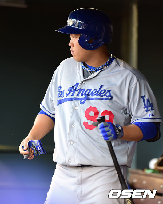 6일(한국시간) 미국 콜로라도주 덴버 쿠어스필드에서 '2014 메이저리그' 미국 메이저리그 콜로라도 로키스와 LA 다저스의 경기, 류현진이 타석에 나갈 준비를 하고 있다.