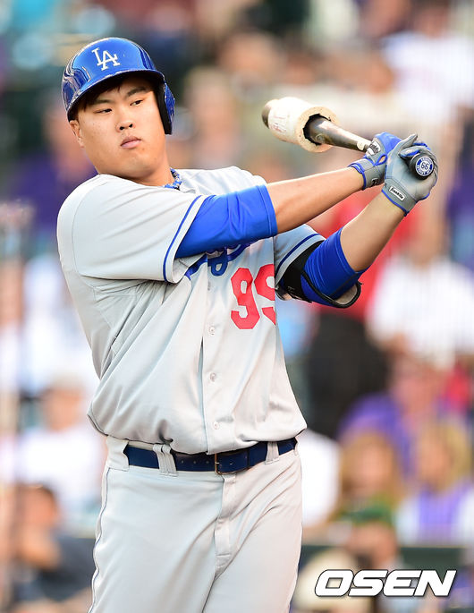 6일(한국시간) 미국 콜로라도주 덴버 쿠어스필드에서 '2014 메이저리그' 미국 메이저리그 콜로라도 로키스와 LA 다저스의 경기, 류현진이 타석을 준비하고 있다.