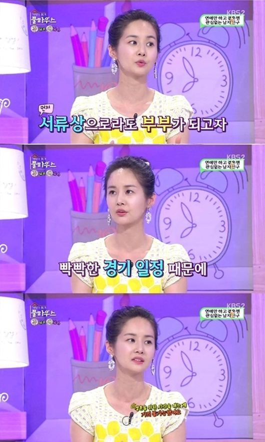 김가연은 지난 6일 방송된 KBS 2TV 예능프로그램 '가족의 품격 풀하우스'에 출연해 임요환과 혼인신고를 먼저하게 된 이유를 고백한 것.