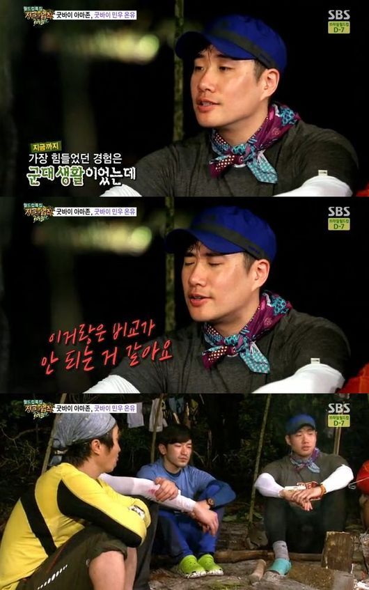 이날 방송에서 배성재는 "군대가 인생에서 제일 힘들었는데 이거와 비교가 안된다"며 거긴 힘들어도 잠은 재운다. 여긴 첫 날 아예 잠을 못 잔다"고 털어놨다. 이어 그는 "죽을 수도 있겠다고 생각했다"라며 멤버들을 놀라게 했다.