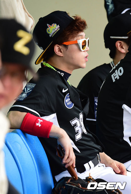 연예인올스타 박성광이 더그아웃에서 경기를 지켜보고 있다.