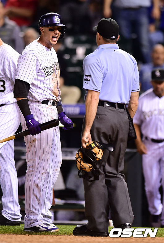 9회말 1사 2루 콜로라도 툴로위츠키가 삼진을 당한 뒤 구심에게 항의하고 있다./youngrae@osen.co.kr