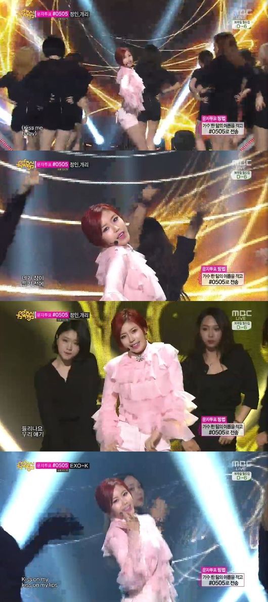 이날 분홍색의 레이스 상의를 입고 무대 위에 등장한 전효성은 특유의 깜찍함과 섹시한 눈빛으로 팬들을 사로잡았다. 뿐만 아니라 특유의 허스키한 목소리가 발랄한 춤과 조화를 이뤄 눈길을 끌었다.