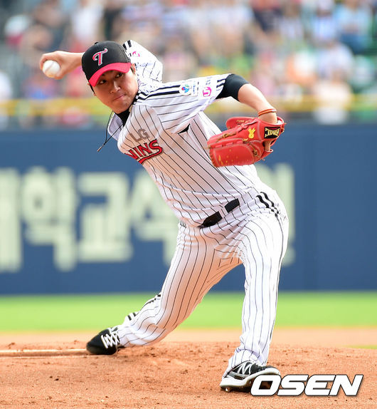 1회초 무사에서 LG 선발투수 우규민이 힘차게 공을 던지고 있다.