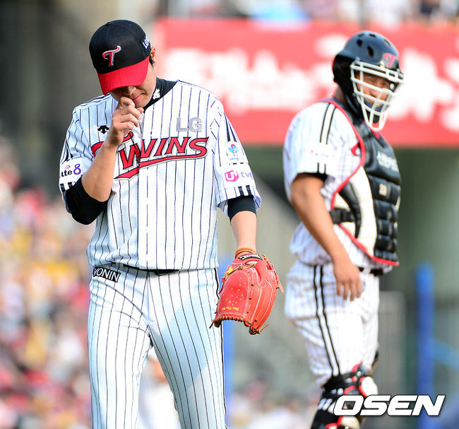 2회초 2사 1루에서 LG 우규민이 마운드를 내려가고 있다.