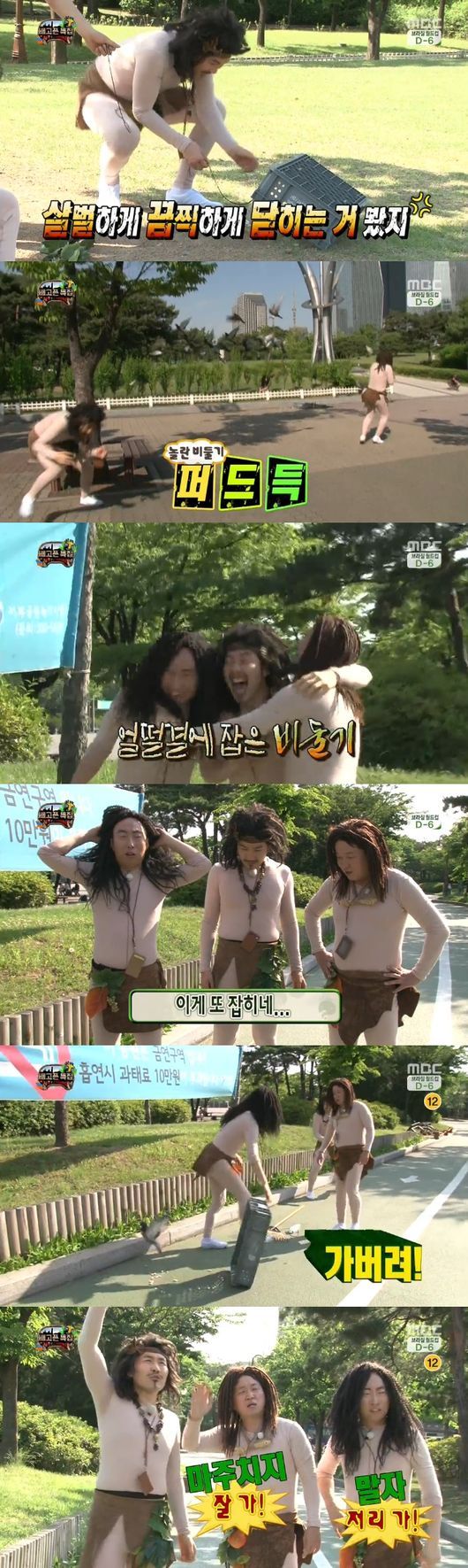 '무한도전'의 노홍철, 박명수, 정형돈이 비둘기 사냥에 성공했다.