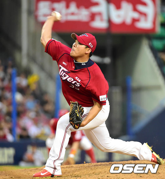 9회초 무사에서 KIA 임준혁이 힘차게 공을 던지고 있다.