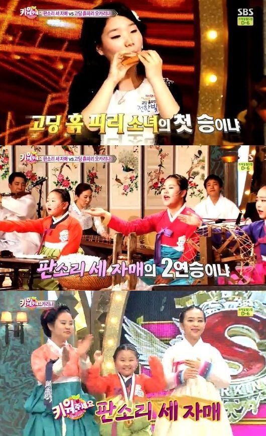 판소리 세자매는 7일 오후 방송된 SBS 예능프로그램 '놀라운 대회 스타킹'에서 '고딩 흙피리 소녀' 전한빛과의 대결에서 승리하며 '키워주세요' 2연승의 주인공이 됐다.