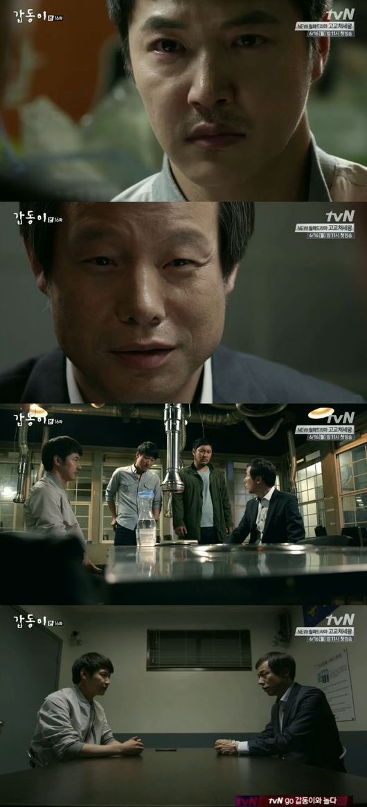 7일 방송된 tvN 금토드라마 '갑동이'(극본 권음미, 연출 조수원 신용휘) 16화에서는 15년전 사건을 벌였던 사이코패스 범인 차도혁(정인기 분)과 그를 죄를 입증하려는 하무염(윤상현 분)의 정면대결이 펼쳐졌다.