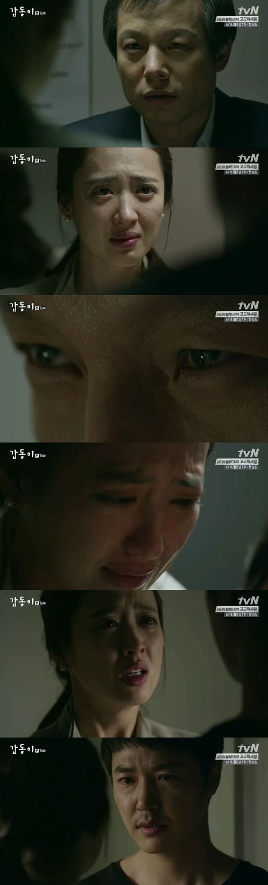7일 방송된 tvN 금토드라마 '갑동이'(극본 권음미, 연출 조수원 신용휘) 16화에서는 15년전 사건을 벌였던 사이코패스 범인 차도혁(정인기 분)과 그를 죄를 입증하려는 하무염(윤상현 분)의 정면대결이 펼쳐졌다. 여기에 9차 사건의 목격자 오마리아(김민정 분)도 끼어들었다.