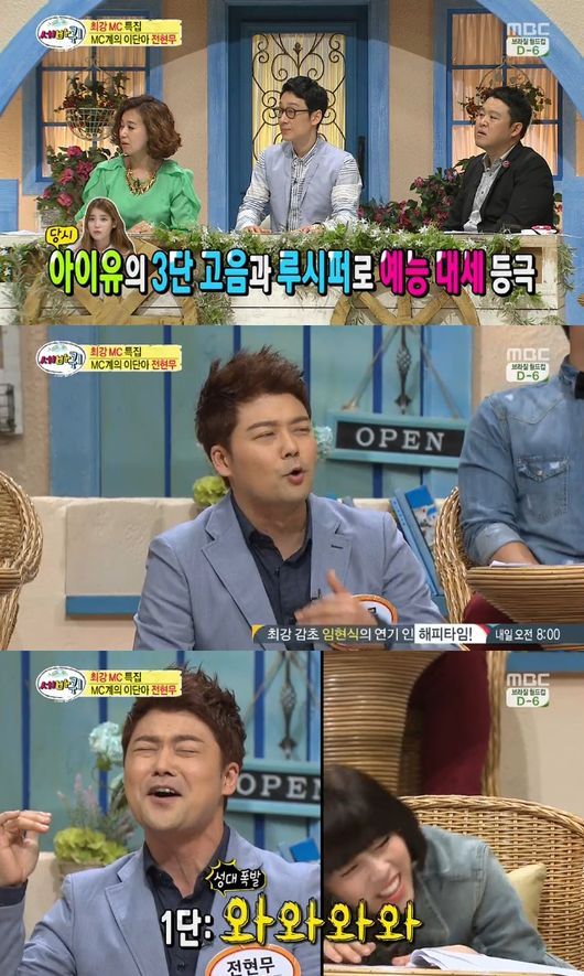전현무는 "예능 진출의 밑거름이 샤이니의 '루시퍼'와 아이유의 3단 고음이었다"고 말했다.
