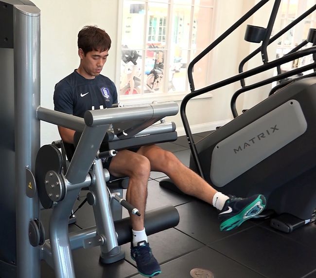 오전 훈련이 없는 경우 선수단은 아침 식사를 한 후 휴식을 취하며 오후 훈련에 대비한다. 하지만 박주영은 휴식보다 훈련을 선택하고 있다. 웨이트 트레이닝으로 근육을 강화하고 있는 것이다. 중점적으로 하는 부위는 무릎이다. 무릎의 근육 강화에 애를 쓰고 있는 것이다.