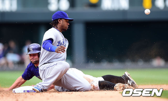8일 새벽(한국시간) 미국 콜로라도주 덴버 쿠어스필드에서 열린 '2014 메이저리그' 미국 메이저리그 콜로라도 로키스와 LA 다저스의 경기, 5회말 무사 1루 콜로라도 맥켄리의 2루 도루때 다저스 라미레즈가 팀 페데로위츠의 송구를 놓치고 있다.
