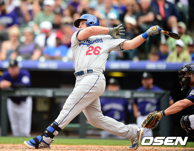 8일 새벽(한국시간) 미국 콜로라도주 덴버 쿠어스필드에서 열린 '2014 메이저리그' 미국 메이저리그 콜로라도 로키스와 LA 다저스의 경기, 7회초 무사 1,2루 다저스 팀 페데로위츠가 스리런 홈런을 때리고 있다.