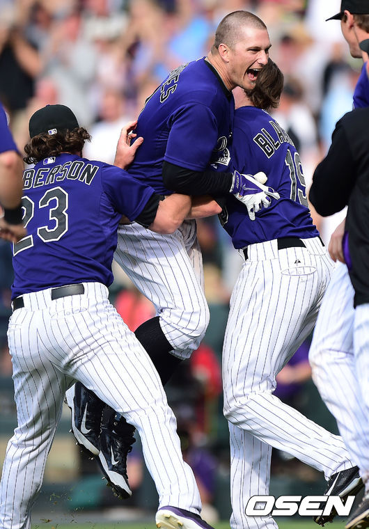 연장 10회말 2사 1루 콜로라도 브랜든 반스가 끝내기 안타를 때린 뒤 동료들과 기뻐하고 있다./youngrae@osen.co.kr