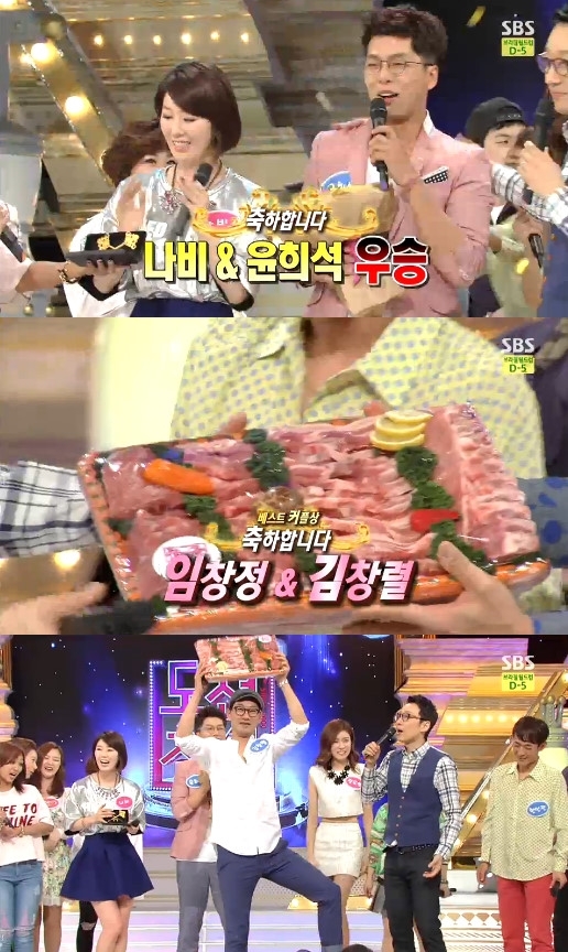 나비와 윤희석은 8일 오전 방송된 SBS 예능프로그램 '도전천곡'에서 박나래와 장도연을 꺾고 우승을 하는 기염을 토했다.