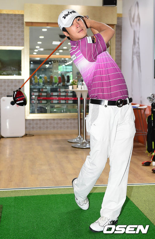 골프선수로 전향한 가수 리치가 힘차게 스윙하고 있다.