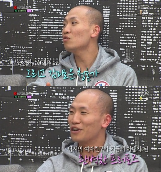 개코는 지난 7일 방송된 KBS 2TV 예능프로그램 '인간의 조건'에서 아내와의 첫 만남과, 프러포즈 과정을 공개했다.