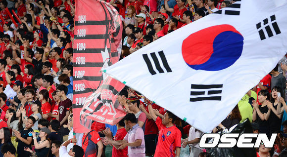한국-가나의 평가전에 붉은악마들이 모여 태극전사들에게 힘을 실어준다.