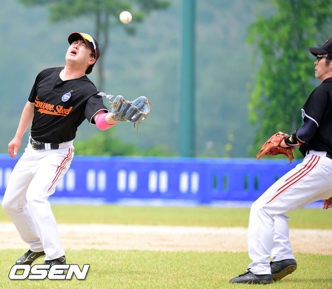 8일 경기도 양평군 오건면 신복리 양평구장에서 진행된 '제5회 니베아맨 컵 전국 생활체육인 야구대회' club bullets(클럽 불레츠)와 심우스틸야구단의 경기, 1회초 2사 만루 클럽 불레츠 성기욱의 내야뜬공때 심우스틸야구단 이경진이 타구를 놓치고 있다.