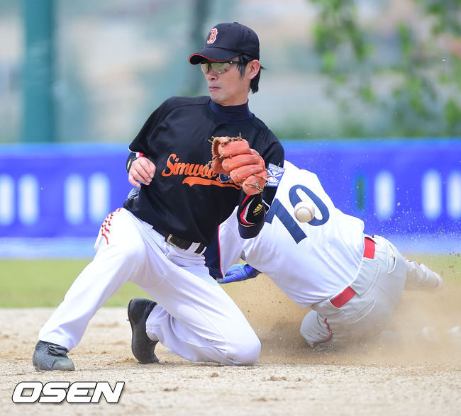 8일 경기도 양평군 오건면 신복리 양평구장에서 진행된 '제5회 니베아맨 컵 전국 생활체육인 야구대회' club bullets(클럽 불레츠)와 심우스틸야구단의 경기, 1회초1사 1루 클럽 불레츠 주성우 타석때 1루 주자 심형섭이 도루 성공하고 있다.