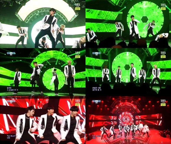엑소는 8일 오후 방송된 SBS 음악프로그램 '인기가요'에 출연해 '중독(Overdose)' 무대를 꾸몄다.