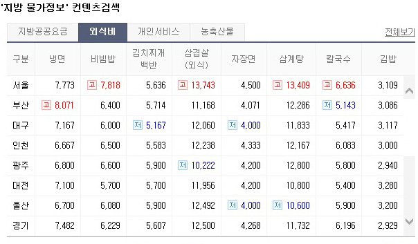 전국 외식비 비교