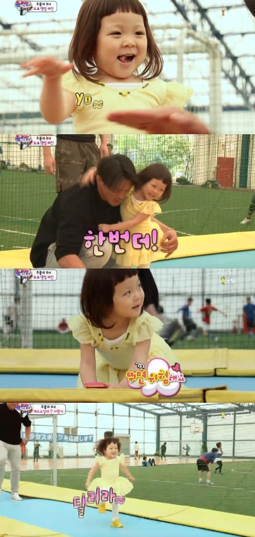 추사랑이 트램펄린 위에서 깜찍함을 발산했다.