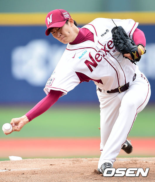 넥센 선발 김대우가 힘차게 공을 뿌리고 있다.
