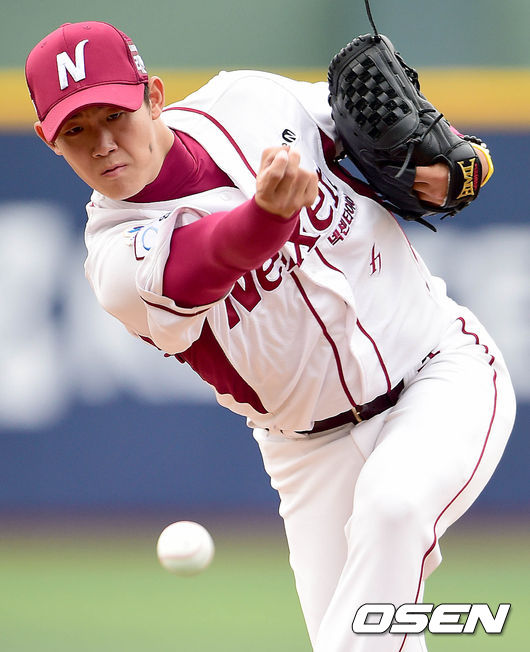 넥센 선발 김대우가 힘차게 공을 뿌리고 있다.