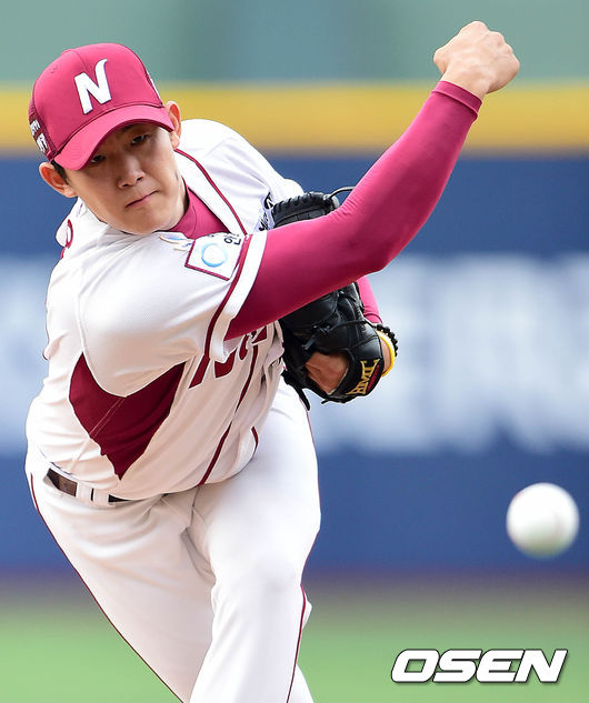 넥센 선발 김대우가 힘차게 공을 뿌리고 있다.