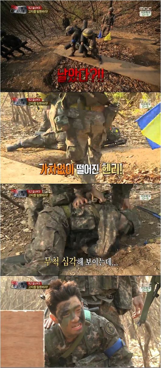 ‘진짜사나이’ 헨리가 힘대결을 벌이던 중 바닥으로 추락하는 사고를 당했다.
