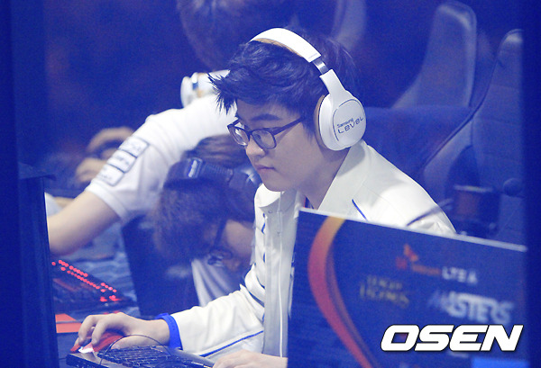 롤 마스터즈 결승전 2세트에 나서는 삼성 블루의 '다데' 배어진이 경기를 준비하고 있다.