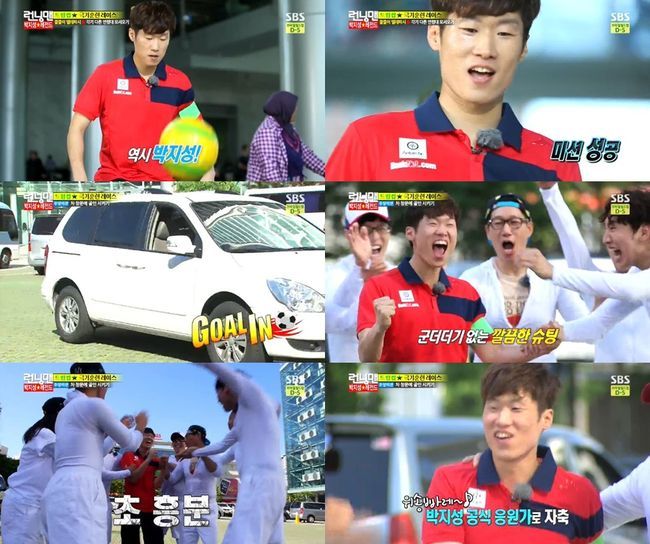 박지성은 8일 오후 방송된 SBS 예능프로그램 '일요일이 좋다-런닝맨(이하 '런닝맨')'에서 황당한 미션도 성공해내 눈길을 끌었다.