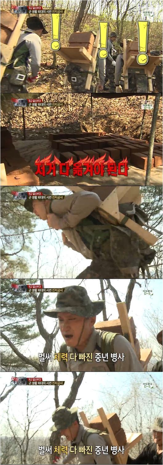 서경석은 8일 방송된 MBC 예능프로그램 ‘일밤-진짜사나이’에서 헨리와 함께 12kg 흙벽돌 2개를 지게에 짊어지고 산길을 올라갔다.