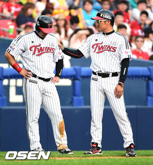 8일 오후 서울 잠실구장에서 열린 2014 한국야쿠르트 세븐 프로야구' LG 트윈스와 KIA 타이거즈의 경기, 4회말 무사 1루 LG 이병규가 비디오 판독으로 3루타로 선언되자 아쉬워하고 있다.