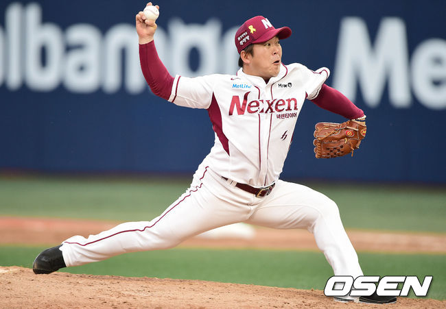 5회초 두산 공격 때 넥센 투수 마정길이 힘차게 공을 뿌리고 있다.