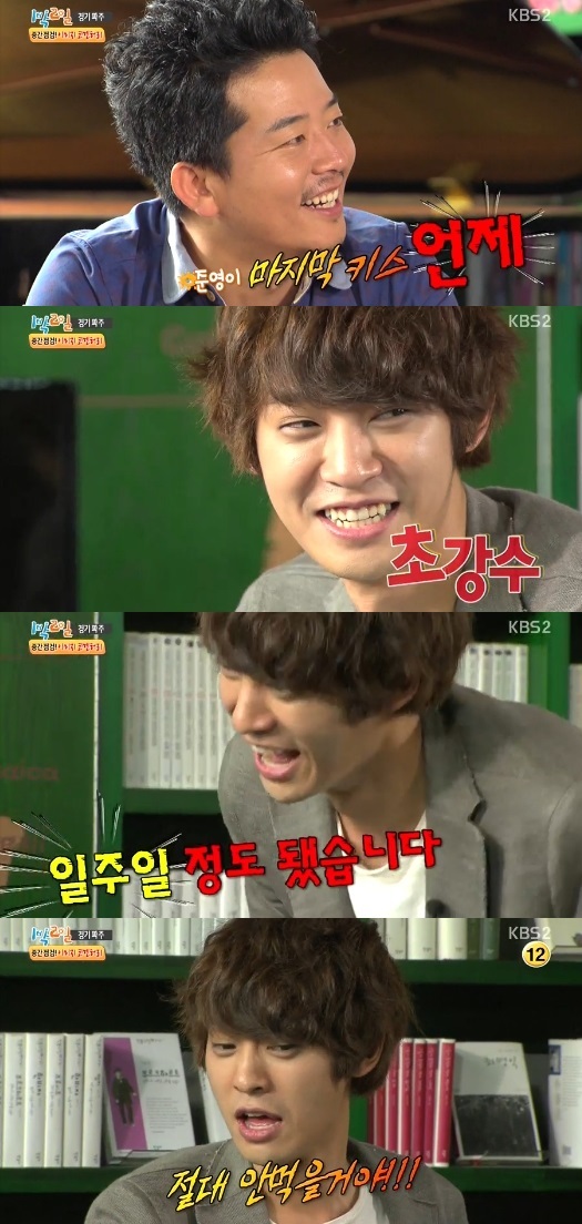 이날 진행된 진실게임에서 정준영은 "마지막 키스가 언제냐"는 김준호의 질문에 고민하다가 "일주일 정도 됐다"고 말했다.
