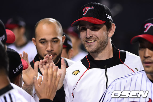 경기종료 후 승리투수가 된 LG 리오단이 미소 짓고 있다. / soul1014@osen.co.kr