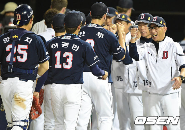 쐐기 투런포를 날린 두산 칸투와 송일수 감독이 인사를 나누고 있다./dreamer@osen.co.kr
