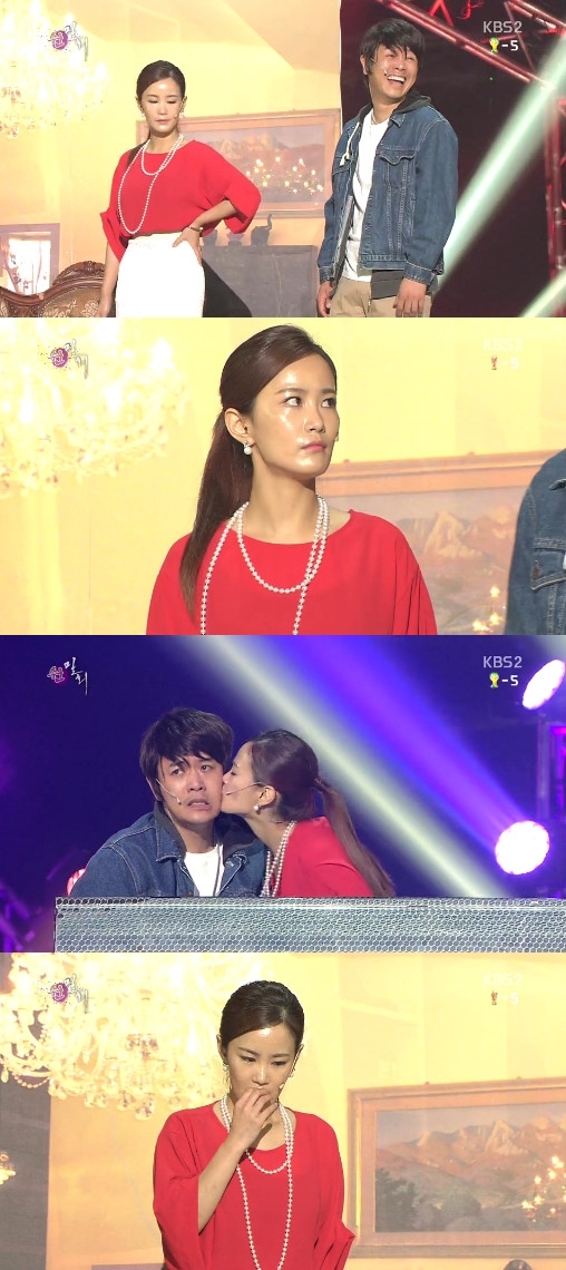 김지민은 8일 오후 방송된 KBS 2TV 예능프로그램 '개그콘서트'의 코너 ‘쉰 밀회’에서 지각한 김대희에게 “버스타면 10분이면 오잖아”라며 나무라는 모습이 그려졌다.